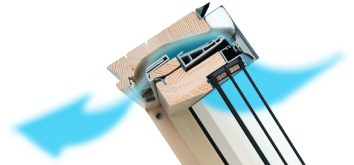 Novatoriškas, didelis stogo langas, kurio atidarytos varčios sukuria balkoną. Viršutinė varčia pasikelia į viršų, o apatinė – atsiverčia į priekį, todėl lengva patekti į balkono nišą.